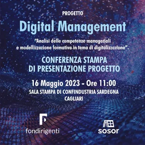 Il 16 maggio 2023 alle ore 11:00, nella sala Stampa di Confindustria Sardegna a Cagliari, Fondirigenti presenterà il progetto “Digital Management – Analisi delle competenze manageriali e modellizzazione formativa in tema di digitalizzazione”.