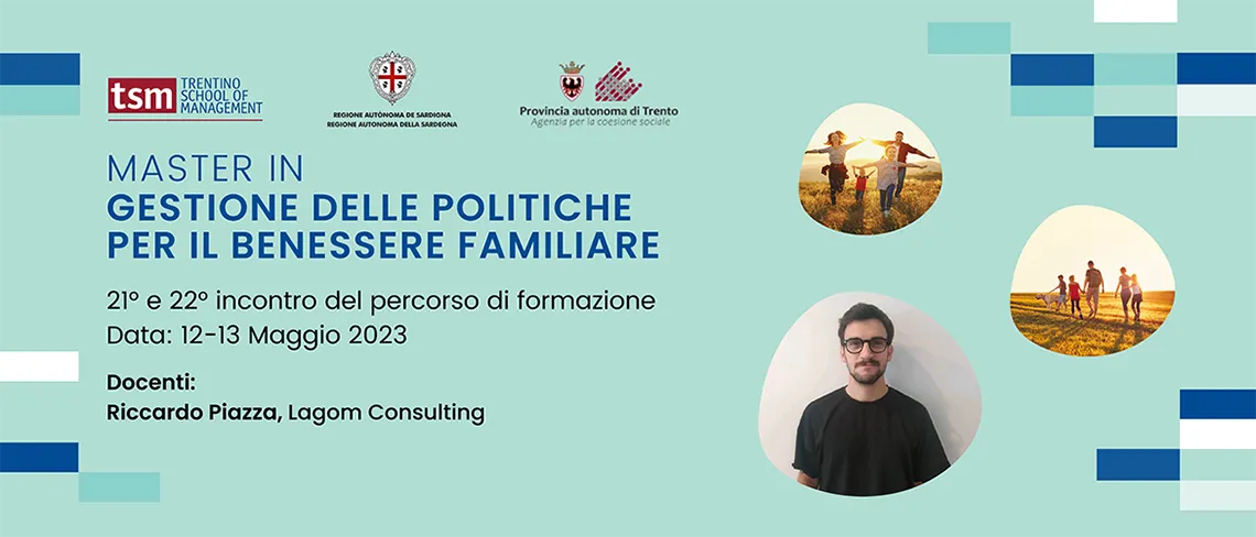 Il Master nasce da un Protocollo d’intesa tra la Provincia autonoma di Trento e la Regione Autonoma della Sardegna per la promozione di un comune impegno nell’attuazione di politiche finalizzate al benessere familiare e organizzato da Tsm-Trentino School of Management in qualità di suo Ente strumentale
