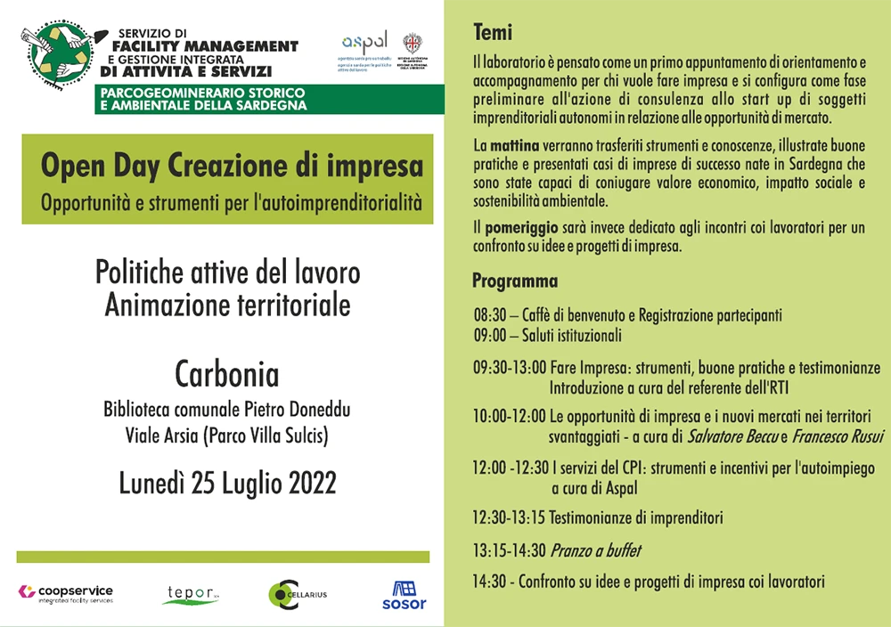 Il giorno 25 Luglio a Carbonia si terrà un OPEN DAY