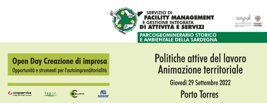 NUOVE PROSPETTIVE PER IL LAVORO Proseguono gli incontri per le “Politiche attive del lavoro – Animazioneterritoriale” a favore dei lavoratori del Parco Geominerario StoricoAmbientale della Sardegna. Il giorno 25 Luglio a Carbonia si terrà un OPEN DAYper la Creazione di Impresa, che illustrerà ai lavoratori le Opportunità egli strumenti per l’autoimprenditorialità attraverso un laboratorio pensatocome un […]